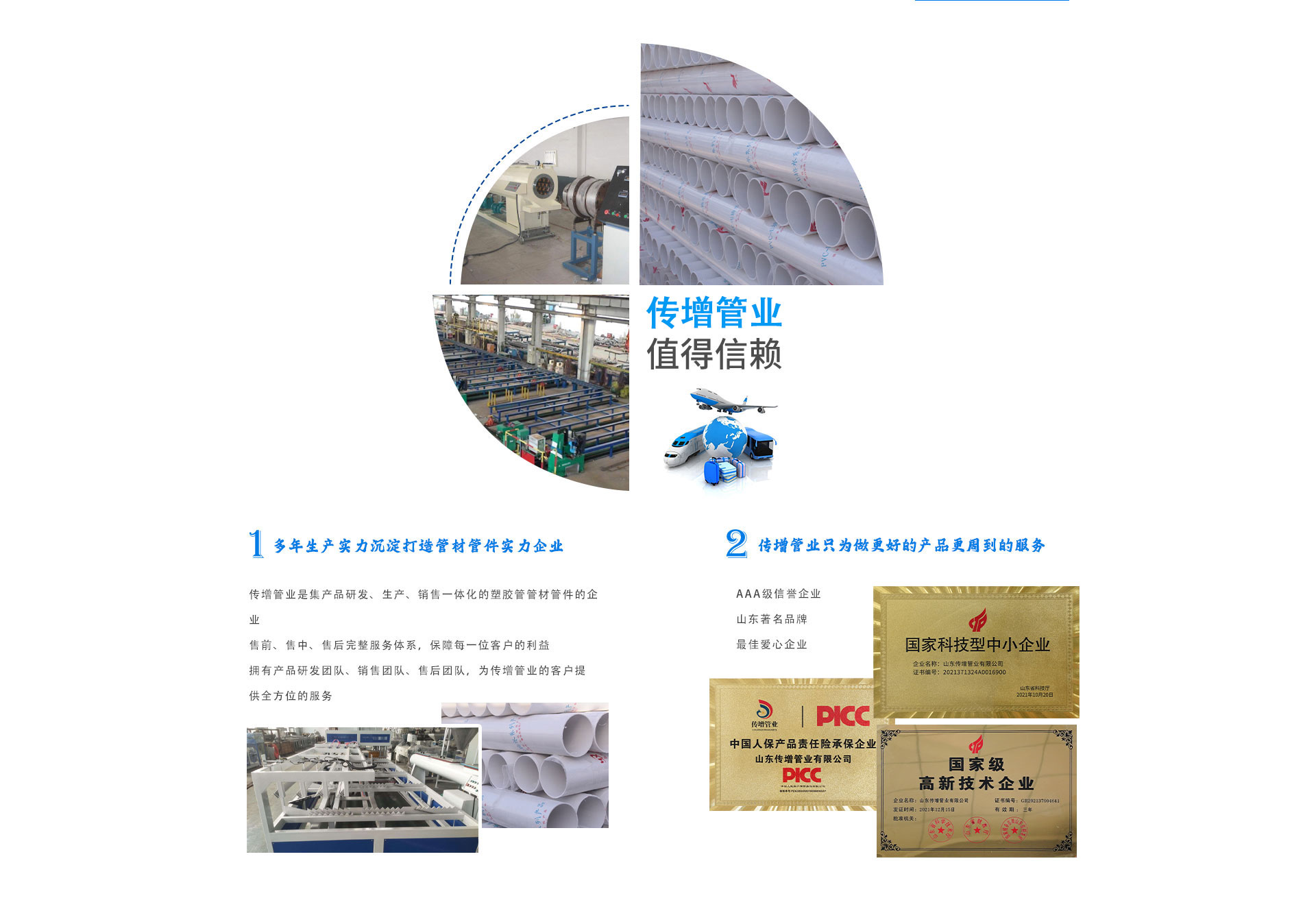 山東傳增管業(yè)有限公司作為一家科技型中小企業(yè),在管材管件領(lǐng)域擁有卓越的技術(shù)實(shí)力,公司擁有高效的經(jīng)營(yíng)管理團(tuán)隊(duì)和生產(chǎn)團(tuán)隊(duì),擁有PVC、PPR、PE管材生產(chǎn)線(xiàn)10余條,產(chǎn)品采用優(yōu)質(zhì)原料以及先進(jìn)的生產(chǎn)工藝,再加上嚴(yán)格的產(chǎn)品質(zhì)量管理體系和先進(jìn)的生產(chǎn)技術(shù)設(shè)備,確保產(chǎn)品質(zhì)量和性能,其產(chǎn)品廣泛應(yīng)用于建筑排水、給水等領(lǐng)域,品牌代理商主要分布在山東,江蘇,河南等省市地區(qū)。